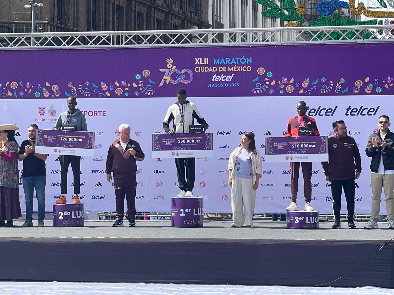 El podio elite varonil lo completaron los kenianos Benard Kipkorir y Edwin Kiprop Kiptoo, quienes cruzaron la meta en 2:11:28.863 y 2:13:07.998, respectivamente. La emoción se vivió hasta el último tramo en el Zócalo capitalino.