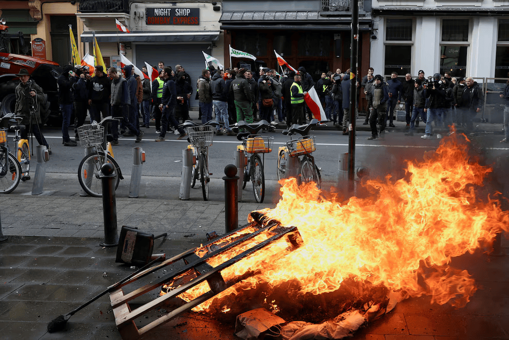 Los manifestantes, que llegaron con cientos de tractores, bloquearon accesos estratégicos al barrio europeo, lanzaron huevos y papas y utilizaron pirotecnia. Las fuerzas de seguridad respondieron con gases lacrimógenos y cañones de agua para dispersar a algunos grupos.