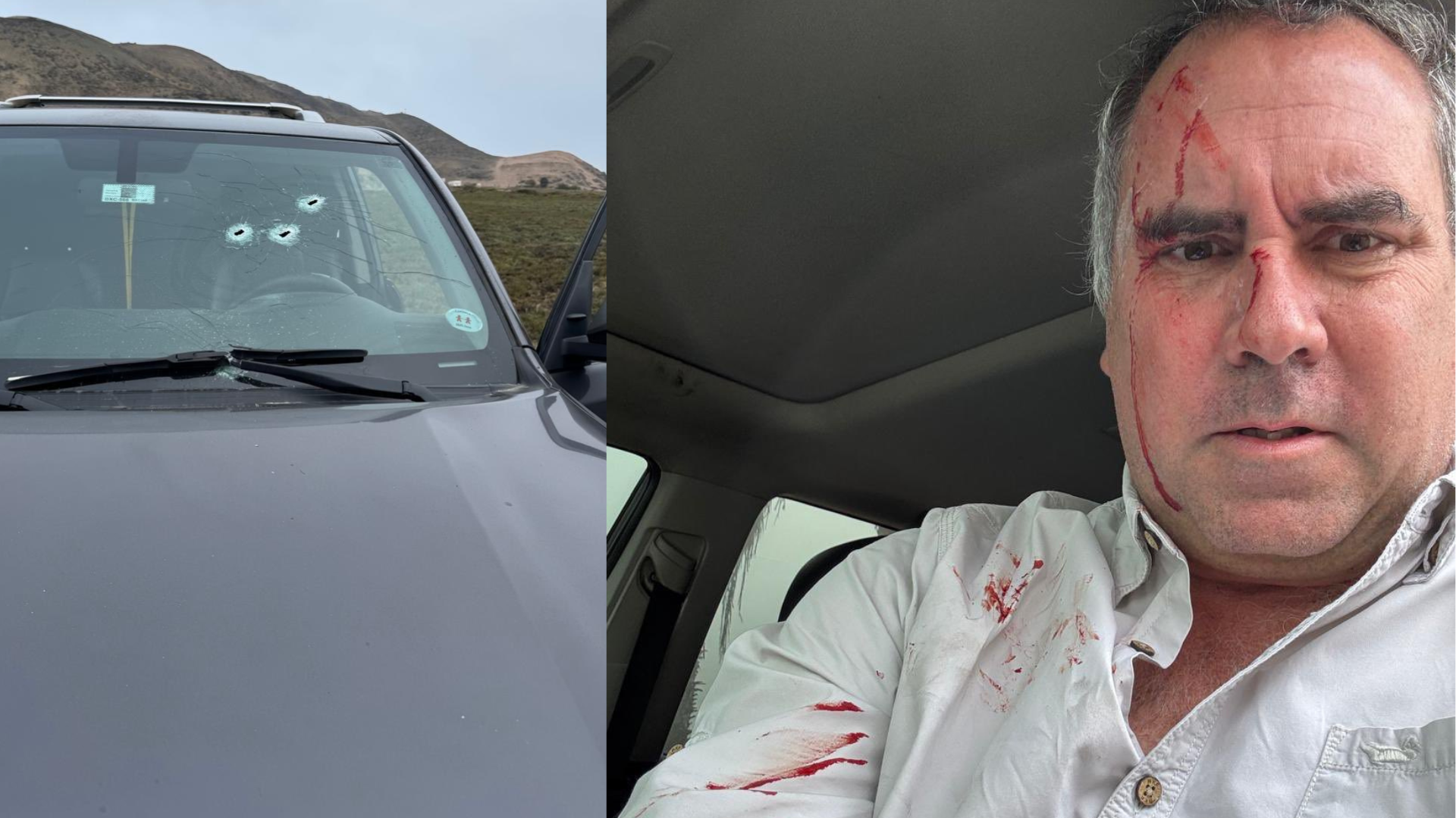 De acuerdo con imágenes difundidas en redes sociales, varios disparos impactaron en el parabrisas del vehículo. El aspirante aparece con manchas de sangre en la cabeza y la camisa, aunque no sufrió heridas de gravedad.
