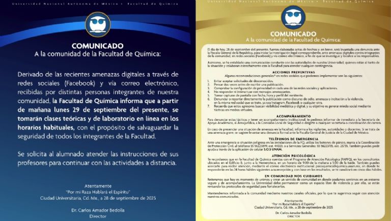 Facultad de Química de la UNAM suspende clases por amenazas digitales CDMX Facultad de Química de la UNAM suspende clases por amenazas digitales