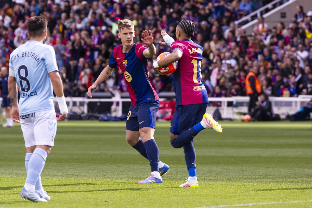 En una noche vibrante en el Estadio Olímpico Lluís Companys, el FC Barcelona logró una remontada histórica al vencer 4-3 al Celta de Vigo, en la Jornada 32 de LaLiga EA Sports. El conjunto azulgrana, dirigido por Hansi Flick, revirtió un marcador adverso de 1-3, gracias a los goles de Dani Olmo y Raphinha, este último anotando el tanto decisivo desde el punto penal en el minuto 96.