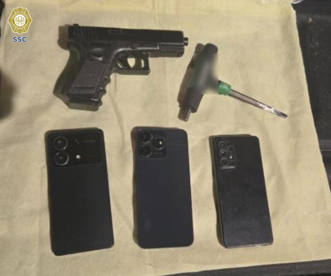 Dos adolescentes de 16 años fueron detenidos por elementos de la Secretaría de Seguridad Ciudadana (SSC), luego de asaltar a dos hombres y amagarlos con una réplica de arma de fuego, así como un objeto punzocortante.