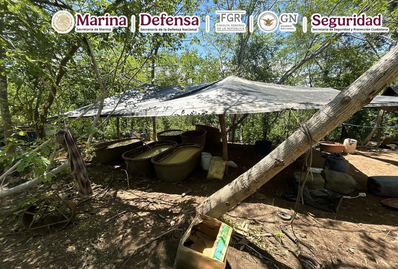 En una operación conjunta, fuerzas federales localizaron y desmantelaron dos laboratorios clandestinos en el poblado Carricitos, Durango.