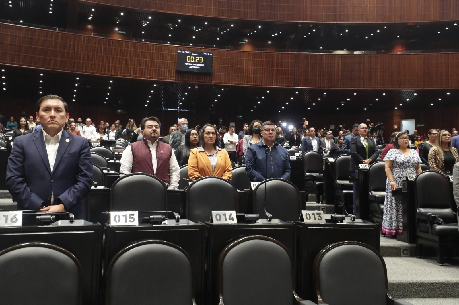 Ante las peticiones, la presidenta de la Mesa Directiva de la Cámara de Diputados, Kenia López Rabadán, pidió a los diputados ponerse de pie para guardar el minuto de silencio.