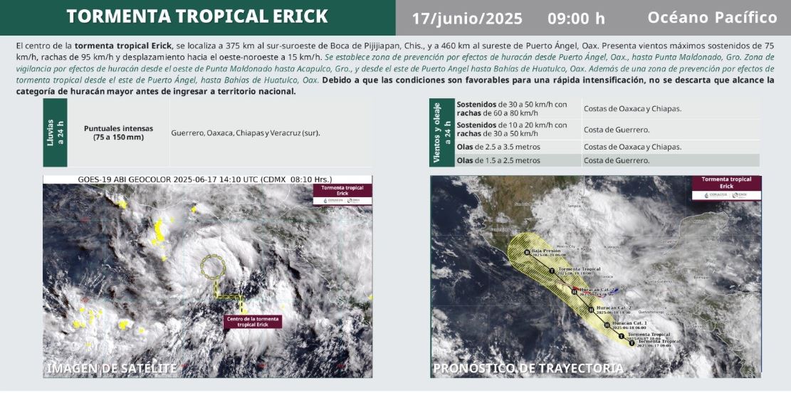 Despliegan operativo de prevención en Guerrero y Oaxaca por huracán Erick Clima Despliegan operativo de prevención en Guerrero y Oaxaca por huracán Erick