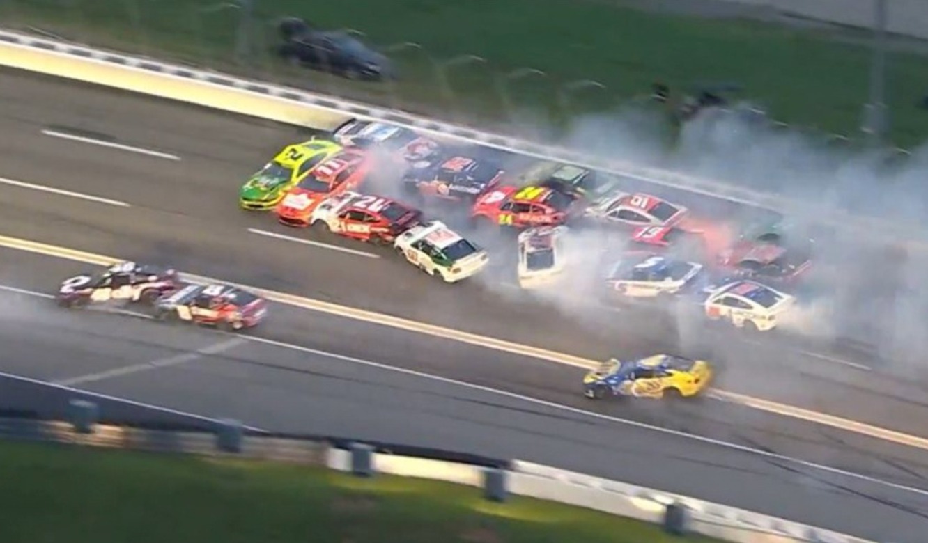 El primer accidente importante se produjo al reiniciar la carrera, cuando Ryan Blaney provocó una colisión múltiple que afectó a Bell, Dillon y Wallace. Esto envió al último al fondo del grupo, algo que más tarde jugaría a su favor.