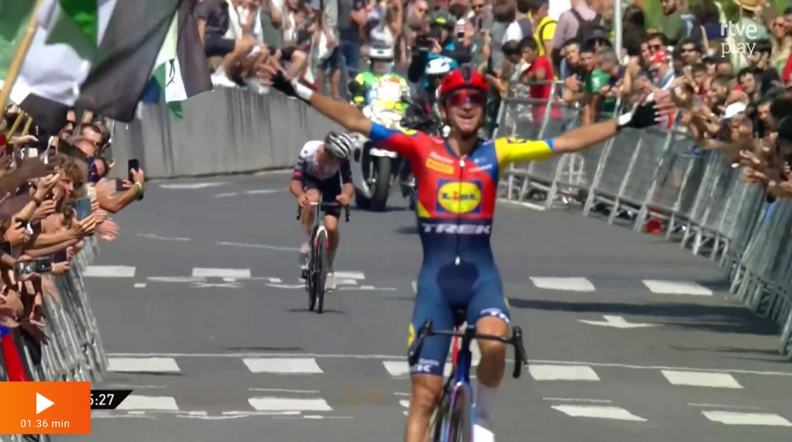 Christen fue el único que logró acercarse en los kilómetros finales, pero no consiguió arrebatarle la gloria a Ciccone. Van Gils se llevó el tercer sitio gracias a su velocidad en el grupo perseguidor.