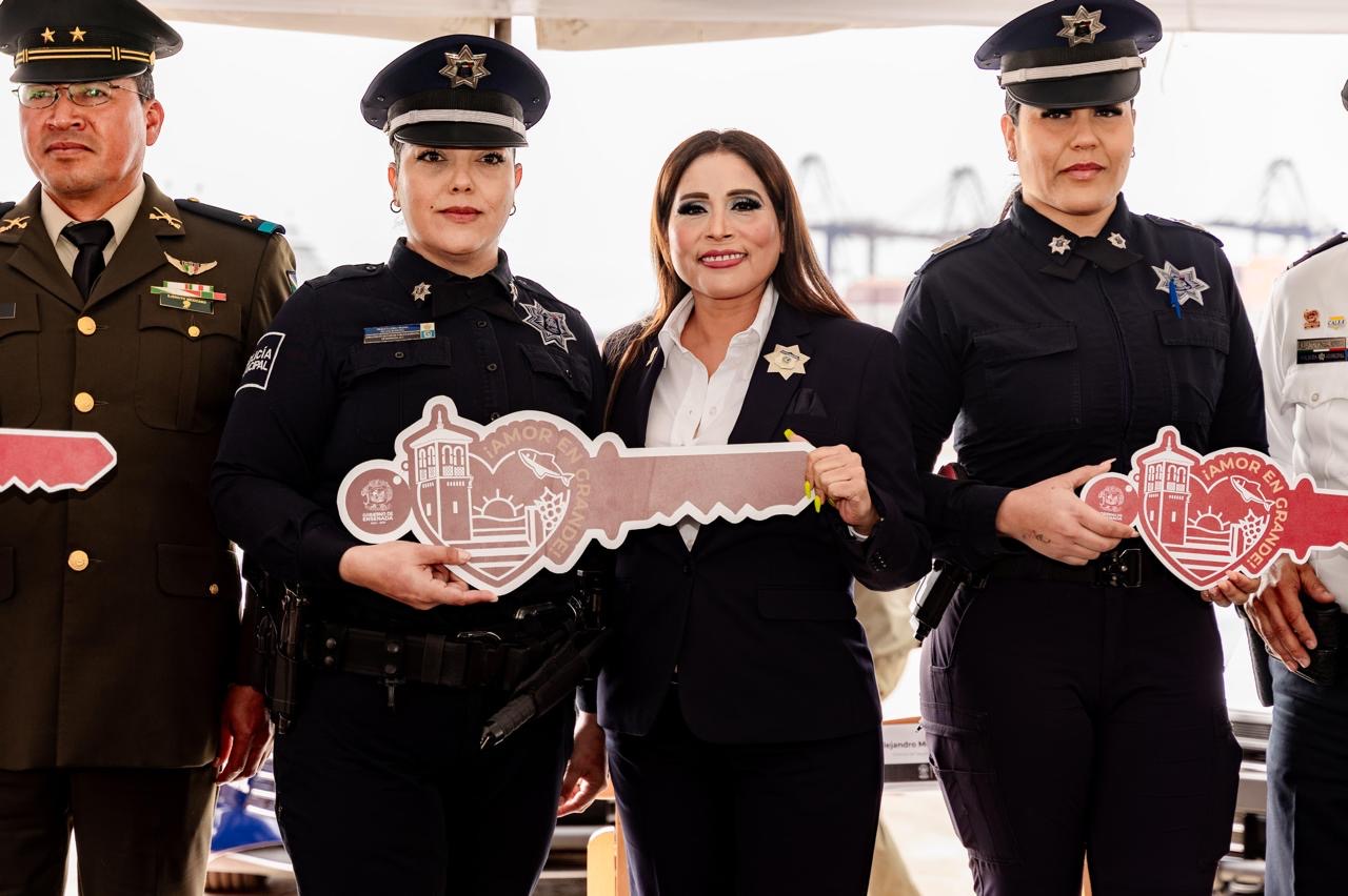 La alcaldesa de Ensenada Claudia Agatón subrayó que, para este año, tiene proyectado dotar con mayor equipamiento a la corporación, incluyendo uniformes, radios y chalecos balísticos, como parte del fortalecimiento integral de la seguridad pública.