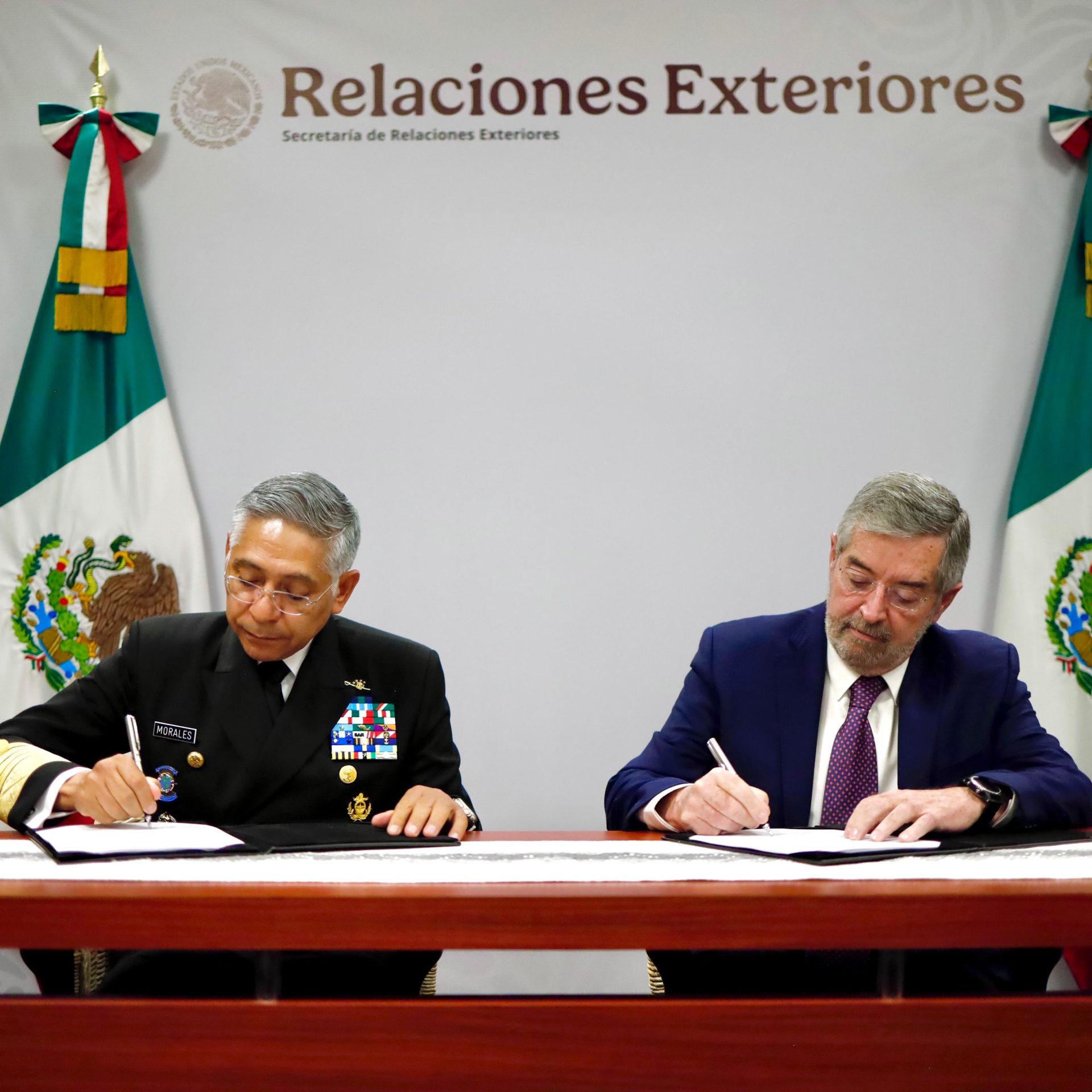 Acompañado por el almirante Raymundo Pedro Morales Ángeles, el canciller señaló que esta nueva etapa entre ambas instituciones permitirá una acción exterior más estratégica y con visión de Estado, fortaleciendo la voz de México en el mundo y fomentando una sinergia interinstitucional que integre diplomacia, seguridad marítima y formación académica.