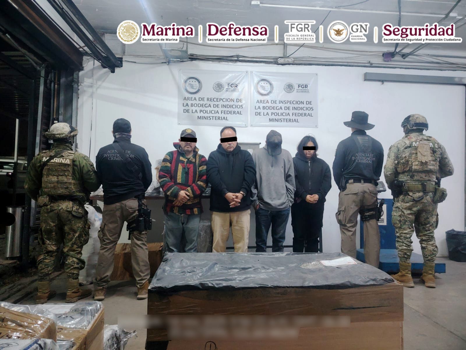 Los trabajos de investigación se realizaron en coordinación con elementos de la Secretaría de Marina, Fiscalía General de la República, Secretaría de Seguridad y Protección Ciudadana, junto con Secretaría de la Defensa Nacional y Guardia Nacional.