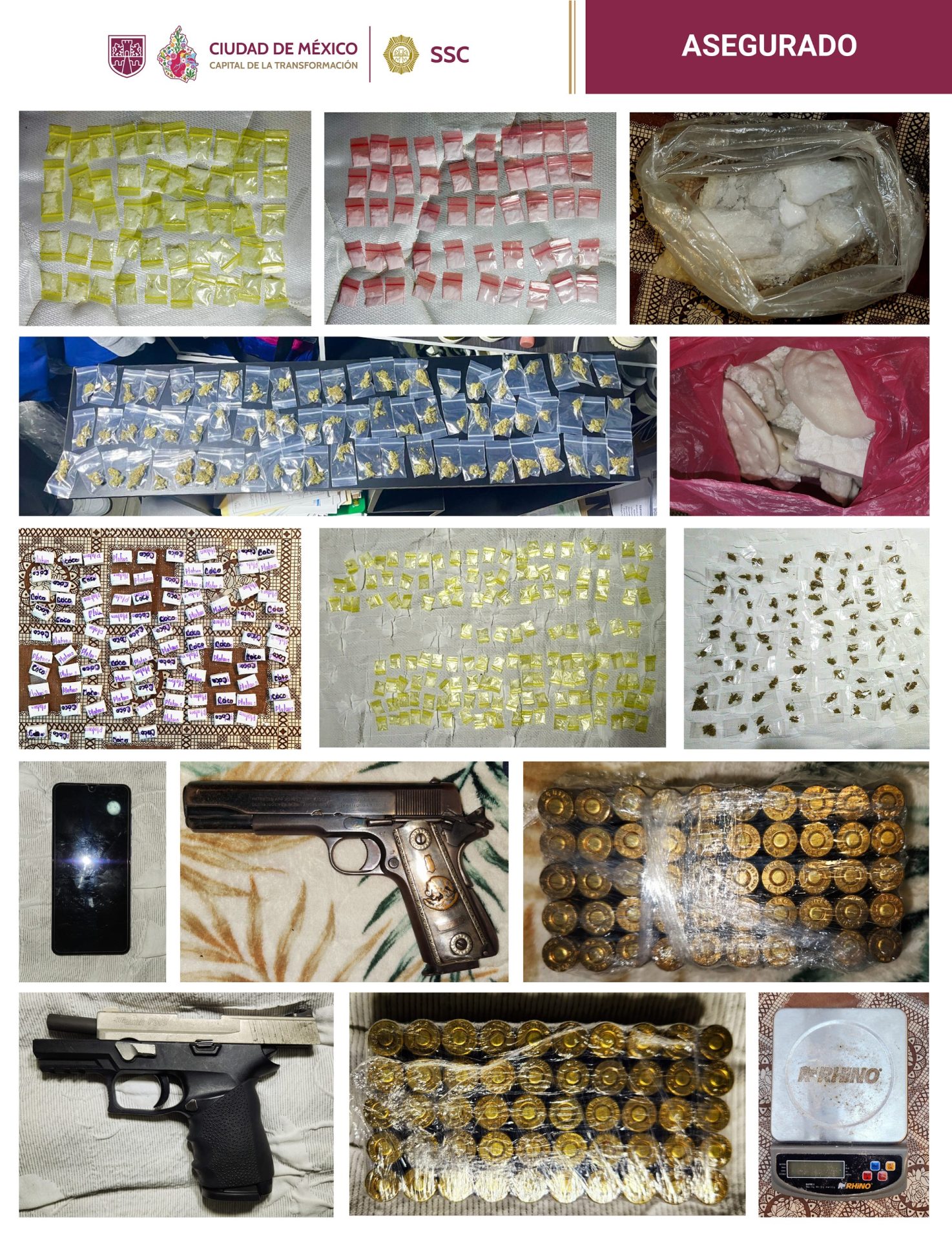 La SSC detalló que se ejecutaron tres órdenes de cateo en inmuebles ubicados en la colonia Popular Rastro, alcaldía Venustiano Carranza; y colonias Bondojito y Guadalupe Insurgentes, Gustavo A. Madero; eran presuntamente utilizados para el almacenamiento y embalaje de droga.