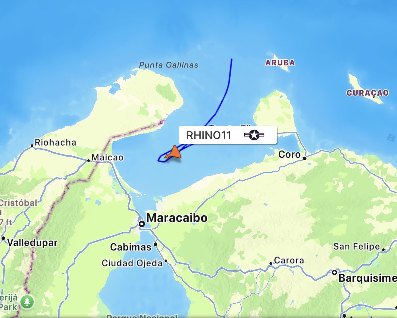 La plataforma especializada de monitoreo aéreo, Flightradar24, reveló que los aviones permanecieron en el golfo situado entre Zulia y Falcón, en las proximidades de Maracaibo realizando maniobras circulares.