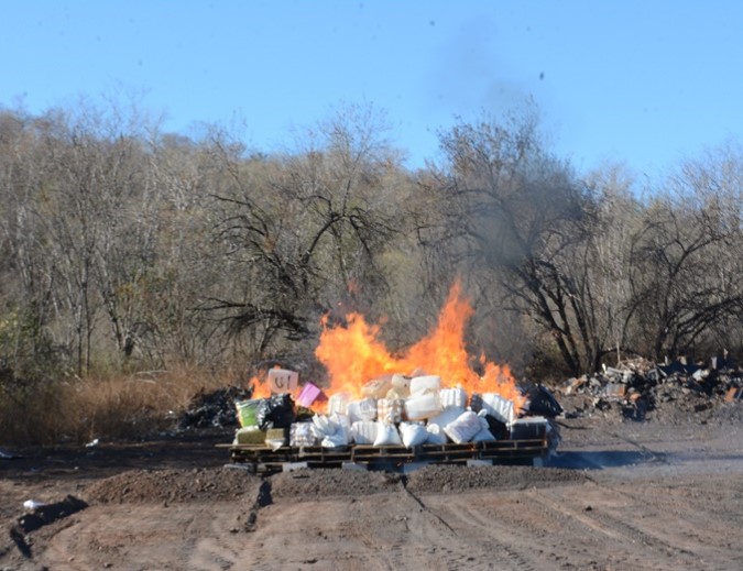 La Fiscalía General de la República (FGR) a través de la Fiscalía Especializada de Control Regional (FECOR) en Sinaloa, incineró narcóticos y objetos de delito incautados en distintos operativos en coordinación con el Gabinete de Seguridad Federal.
