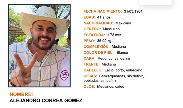 La Fiscalía General de Michoacán confirmó la desaparición de Alejandro Correa Gómez, exalcalde de Zinapécuaro entre 2018 y 2021. Alejandro Correa fue visto por última vez la madrugada del 2 de noviembre en la comunidad de Tierras Coloradas, municipio de Hidalgo, al oriente del estado.