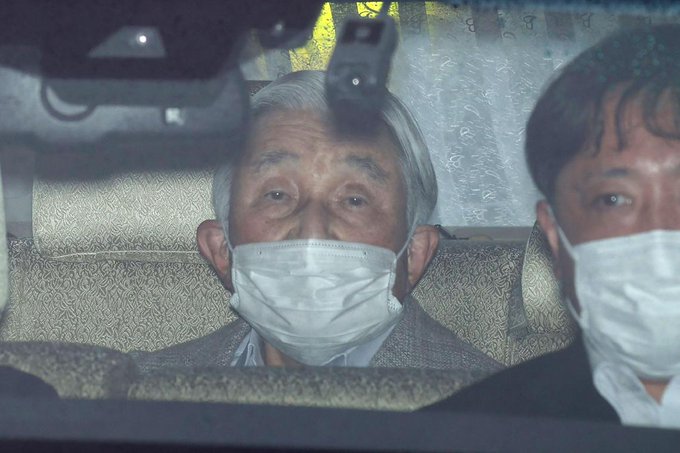 Acompañado de su esposa Michiko, el emperador emérito salió de la Residencia Imperial Sento para trasladarse al Hospital Universitario de Tokio, sin que hasta el momento haya más información sobre su salud.
