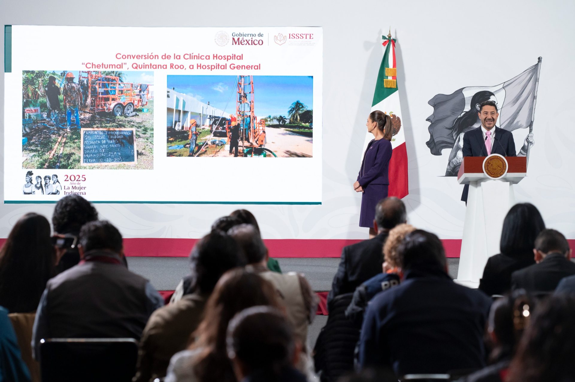 Destacó la transformación de la clínica de Chetumal en un Hospital General, lo que permitirá pasar de 30 a 90 camas, beneficiando a miles de derechohabientes en Quintana Roo, entidad que hasta ahora no contaba con un hospital del ISSSTE. Este nuevo centro también contará con un tomógrafo de última generación, en el marco de la estrategia nacional de modernización del sistema de salud impulsada por la presidenta Claudia Sheinbaum.