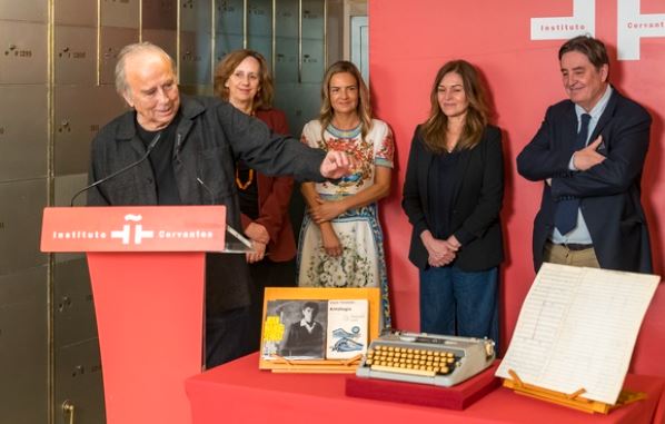 El cantautor español, Joan Manuel Serrat, depositó en la Caja de las Letras, la número mil 276, su legado para el Instituto Cervantes. Se trata del primer disco que grabó en 1965, compuesto por canciones en catalán, que además fueron las primeras que compuso en su carrera; y la partitura original de “Mediterráneo”, con anotaciones de su puño y letra.