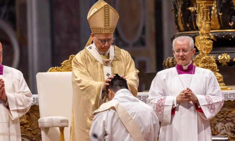El Papa León XIV presidió la ordenación de once nuevos sacerdotes en una misa en la Basílica de San Pedro. La ceremonia comenzó con los nuevos ordenados vestidos completamente con paramentos blancos y siendo llamados por su nombre: “Aquí estoy”, respondieron todos.