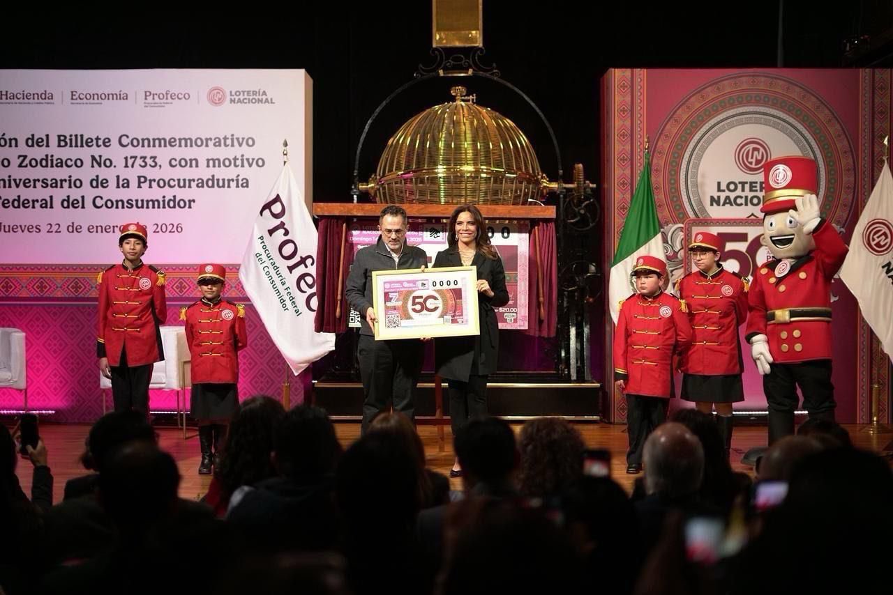 En el marco del 50 Aniversario de la Procuraduría Federal del Consumidor (Profeco), la Lotería Nacional presentó el billete del Sorteo Zodiaco No. 1733, que reconoce a la institución.