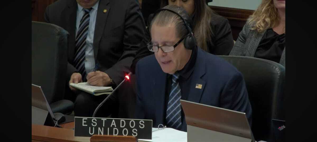 Este martes se llevó a cabo la sesión de la Organización de los Estados Americanos (OEA) para dar seguimiento a la situación actual entre Venezuela y Estados Unidos; durante el evento una mujer interrumpió las palabras del representante americano para manifestarse en contra.