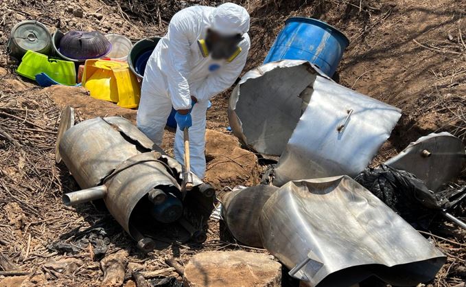 Sinaloa. En Culiacán, se localizaron e inhabilitaron siete áreas utilizadas para la concentración de material diverso destinado a la elaboración de metanfetamina, se aseguraron 6 mil 440 litros de sustancias químicas empleadas en la producción de la droga. La afectación económica para las organizaciones delictivas es de 134 millones de pesos.