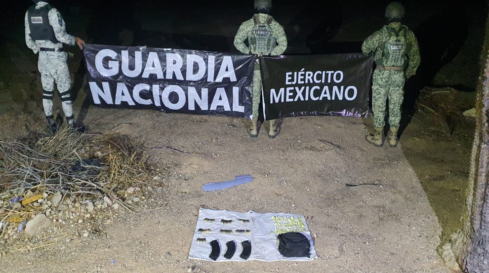 Sonora. Se aseguró un arma larga, cinco cargadores, 124 cartuchos, 331 dosis de metanfetamina, 100 dosis de marihuana y 20 dosis de cocaína.