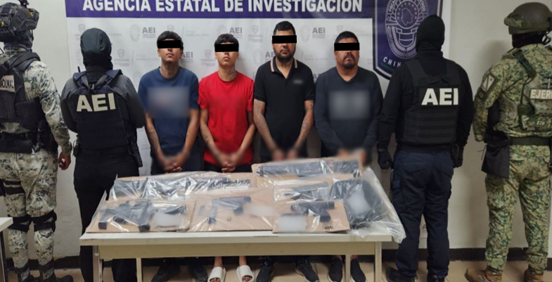 Chihuahua: Se detuvo a cuatro personas, se aseguraron seis armas de fuego, seis cargadores, ocho cartuchos y un vehículo.