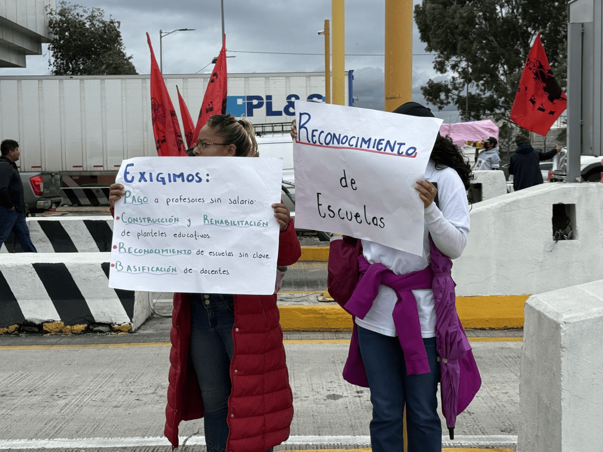 Los docentes exigen la regularización de escuelas sin clave de centro, pagos inmediatos a maestros que laboran sin salario justo y mejora de infraestructura y equipamiento. También solicitan seguridad laboral para personal con contrato temporal y optimización de los servicios de ISSEMYM.