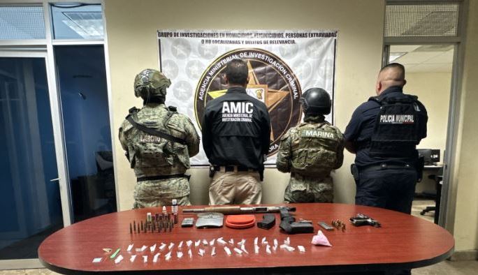 En Sonora, en Hermosillo se detuvo a una persona, se aseguraron 84 dosis de metanfetamina, 179 dosis de marihuana y dinero en efectivo. En Cajeme se aseguraron dos cargadores, 29 cartuchos, un arma corta, una escopeta un inmueble, un vehículo, 38 dosis de metanfetamina y tres básculas grameras.