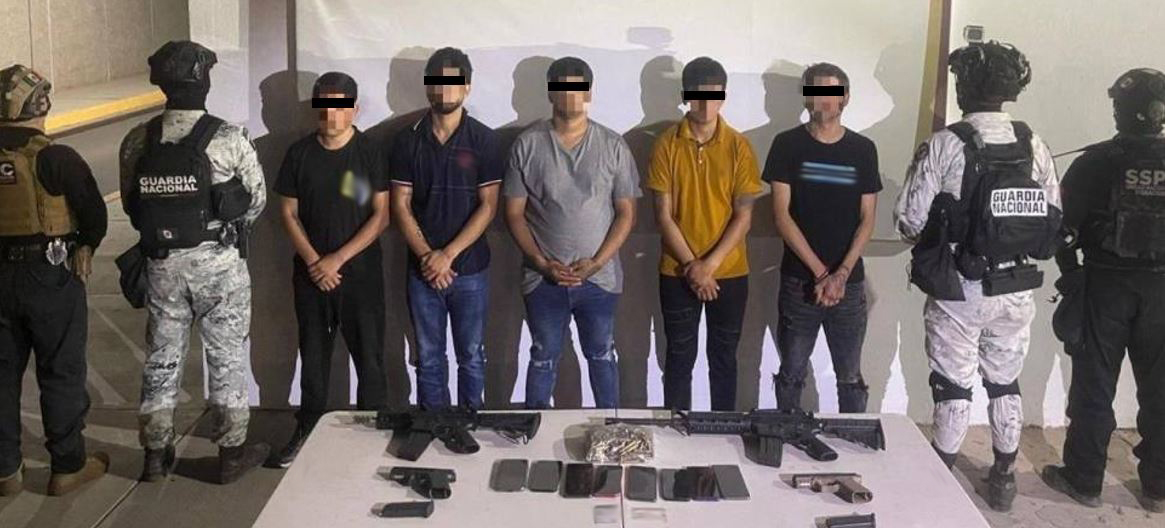 Nuevo León: cuatro detenidos, dos de ellas menores de edad, se aseguraron armas largas, cargadores, cartuchos, chalecos tácticos y dos vehículos.