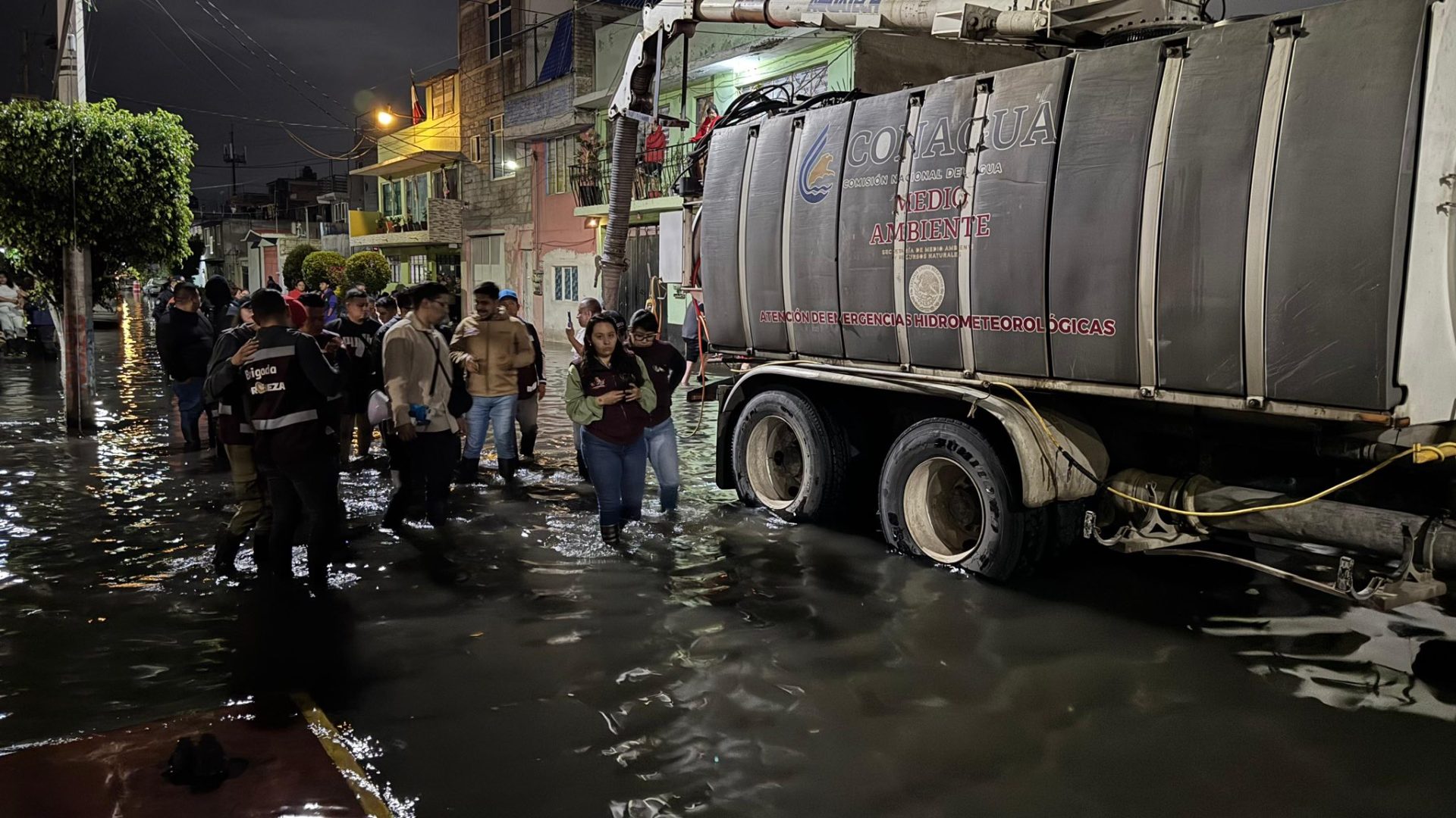 Esta mañana las colonias Metropolitana Tercera Sección, Evolución y Vicente Villada en Nezahualcóyotl, Estado de México, continuaban inundadas por las lluvias del pasado sábado 27.