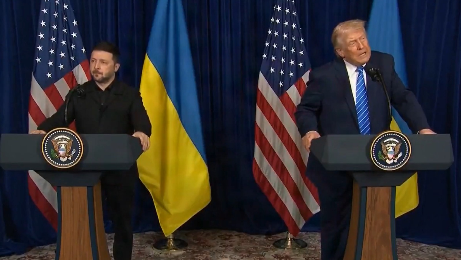 En una conferencia conjunta, ambos ejecutivos declararon que el acuerdo de paz está casi finalizado. Donald Trump aseguró que hasta el momento hay un 95% de avances en el acuerdo, sin embargo, el tema territorial sigue pendiente, pues Rusia exige el territorio de Donbás.