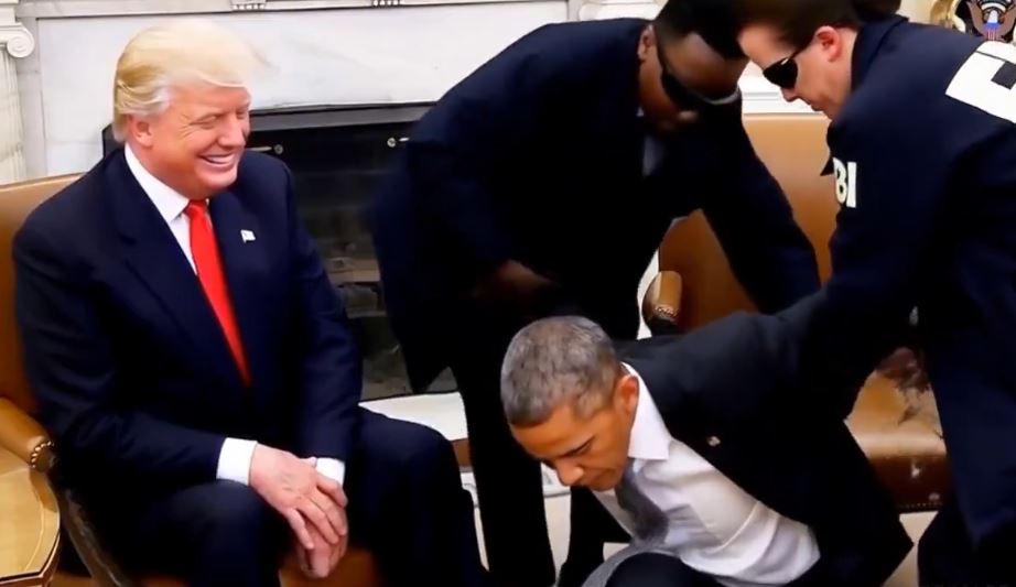 Se presume que una reunión ocurrida en noviembre de 2016 entre ambos mandatarios fue la que se manipuló para que se vieran a agentes del FBI irrumpiendo en la sala, obligando a Obama a arrodillarse y colocándole esposas.