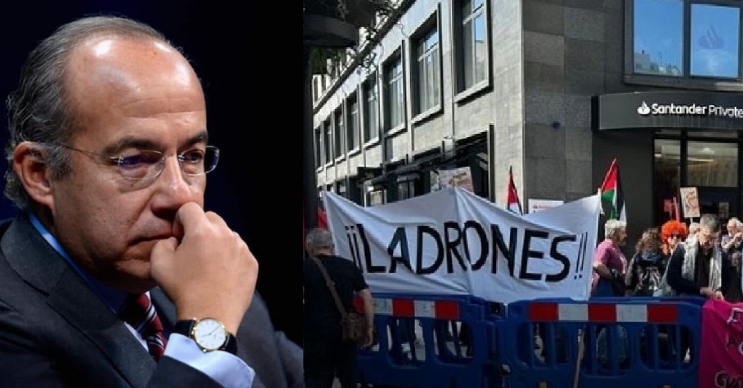 Unas 200 personas se manifestaron frente al Teatro Campoamor, en Oviedo, capital de Asturias, España, para rechazar la presencia del expresidente mexicano, Felipe Calderón, y otros líderes políticos conservadores, convocados por la Fundación Libertad y Desarrollo al foro internacional “La política y el desarrollo: dos caras de la misma moneda”.