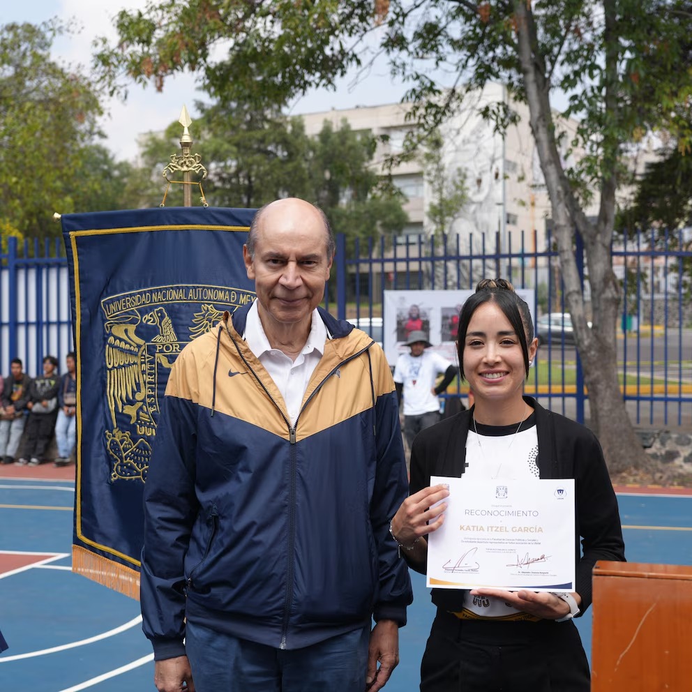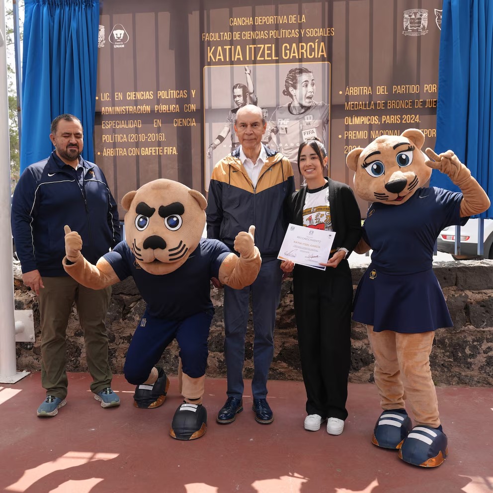 Katia Itzel García, reconocida árbitra de la FIFA y la Concacaf, fue homenajeada en la Facultad de Ciencias Políticas y Sociales (FCPyS) de la UNAM, donde estudió Ciencias Políticas y Administración Pública. En una emotiva ceremonia, se inauguraron las canchas deportivas que ahora llevan su nombre, un tributo a su trayectoria profesional y su paso como estudiante y deportista universitaria.