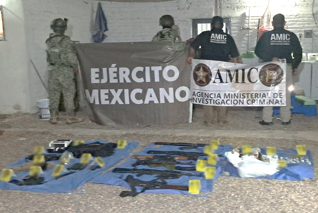 En Altar, Sonora, se aseguraron 7 armas largas, 13 cargadores, 325 cartuchos, 5 kilos de marihuana, 2 vehículos y 1 inmueble. En Nogales, se detuvo 1 persona, se aseguraron 74 mil cigarros y 1,200 dosis de marihuana, además de un vehículo.