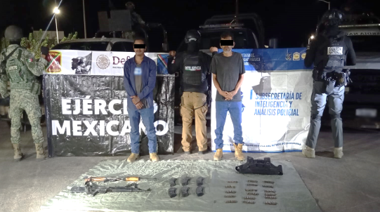 La Secretaría de Seguridad y Protección Ciudadana detalló que destacaron diligencias en cuatro estados. En Coyame del Sotol, Chihuahua, se detuvo a dos personas, se aseguraron dos armas largas, seis cargadores, 171 cartuchos y un chaleco táctico; mientras que en el mismo estado, pero en el municipio de Balleza, se aseguraron dos armas largas y 25 cartuchos.