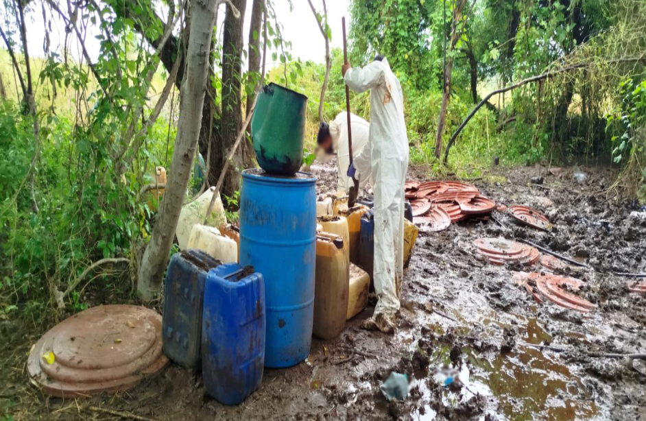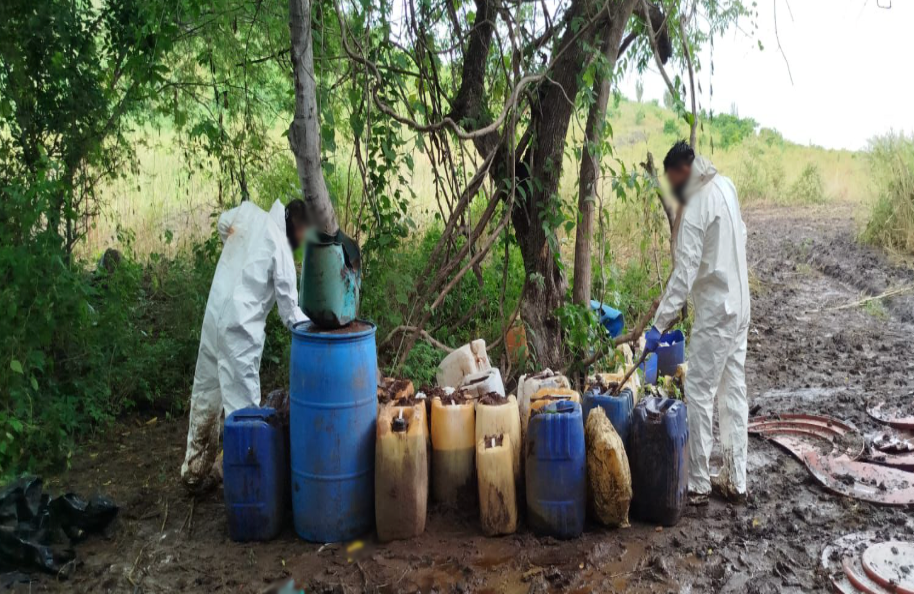 En Cosalá, Sinaloa, se localizó e inhabilitó un área de concentración de material diverso para la elaboración de drogas sintéticas, se aseguraron 1,400 litros de sustancias para la elaboración de metanfetamina. La afectación económica a la delincuencia organizada es de 28 millones de pesos.