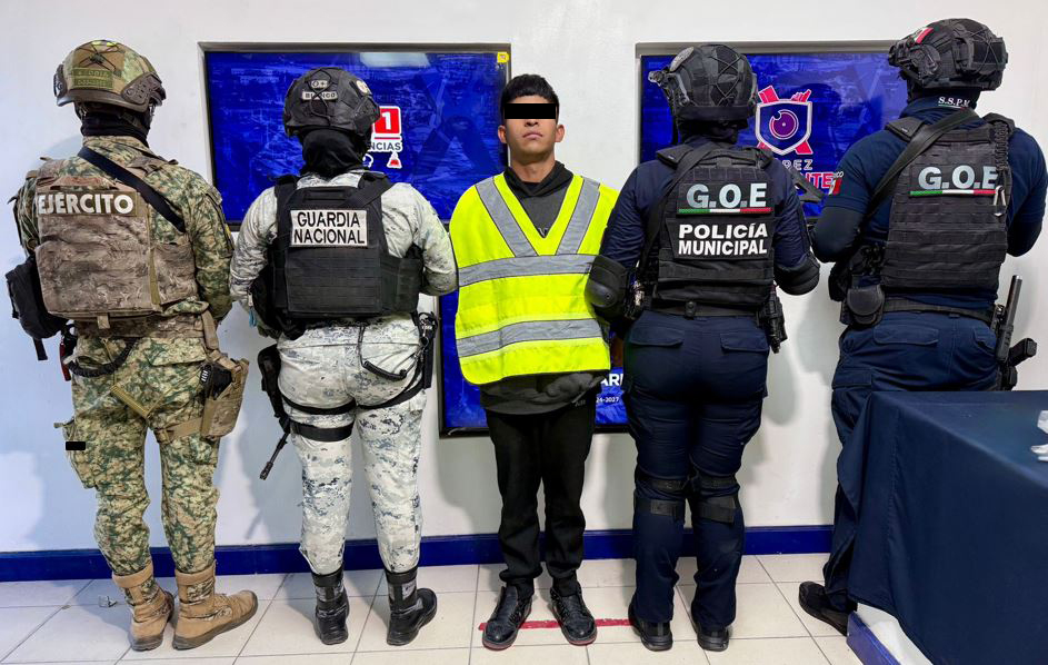 En Ciudad Juárez, Chihuahua se detuvo a una persona, se aseguró un lanzacohetes, dos armas cortas, un cargador, 2,375 cartuchos, 6,200 pastillas de fentanilo, 2.3 kilos de metanfetamina, un chaleco táctico, una placa balística, un vehículo y un inmueble.