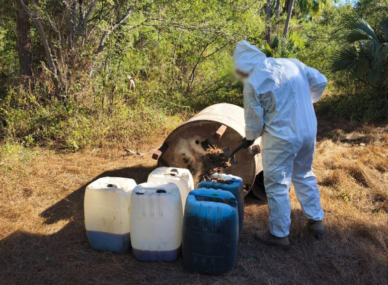 En el lugar, se aseguraron 18,220 litros y 275 kilos de sustancias para la elaboración de metanfetamina, cuatro reactores de síntesis orgánica, cuatro centrifugadoras y dos tanques de gas LP. La afectación económica a la delincuencia organizada es de 368 millones de pesos.