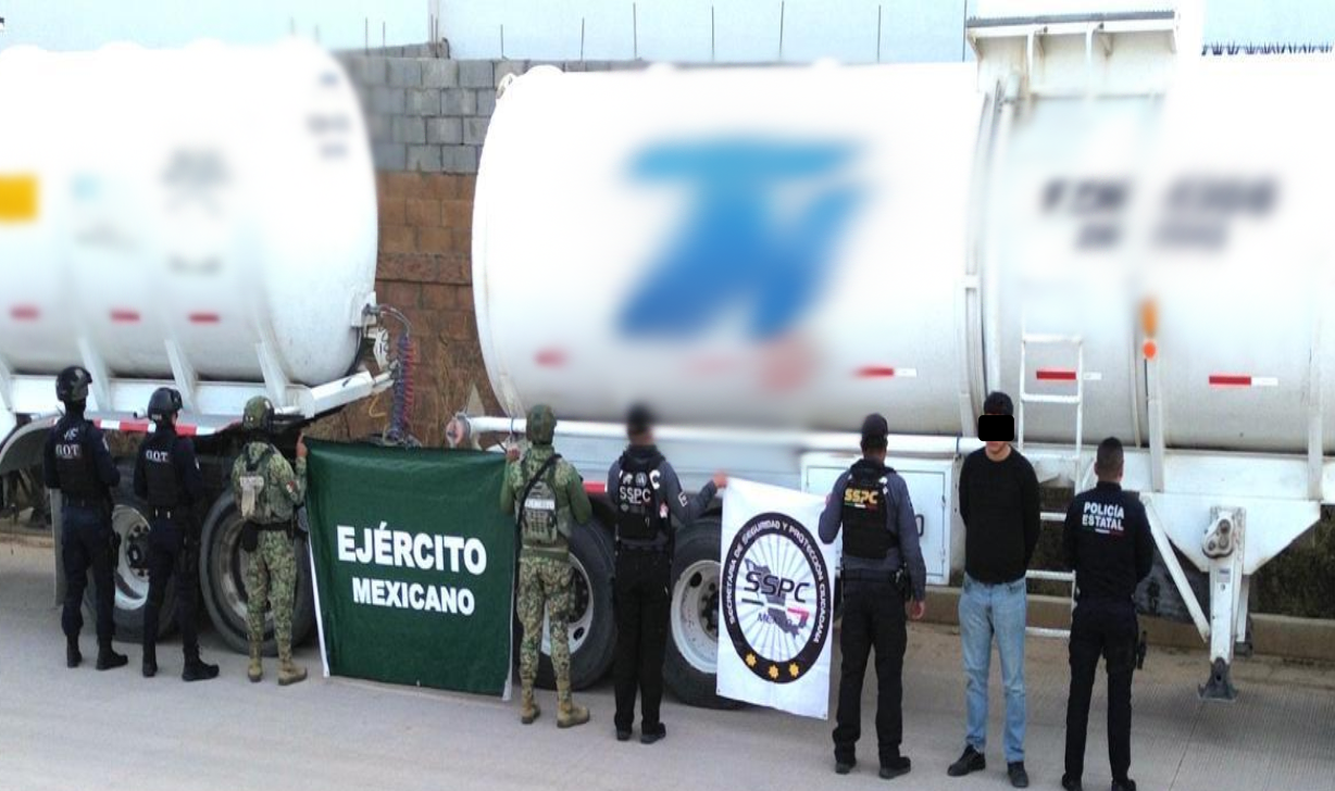 En Ímuris, se detuvo a otra persona y se aseguró un tractocamión con dos autotanques y 62,000 litros de hidrocarburo.