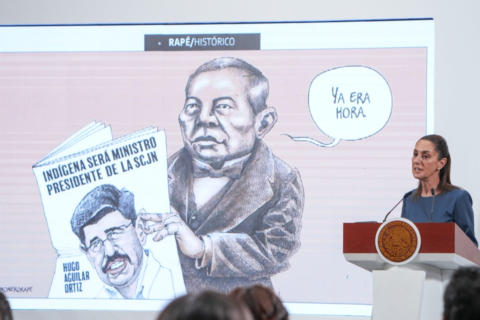 La presidenta de México, Claudia Sheinbaum, celebró que Hugo Aguilar, candidato de origen indígena, se perfile para ser el próximo presidente de la Suprema Corte de Justicia de la Nación.