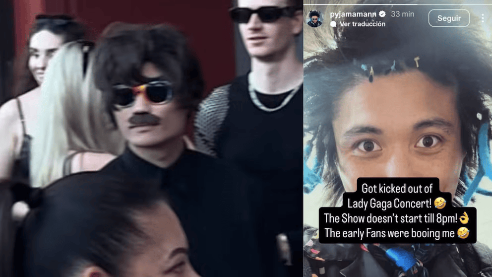 El australiano Johnson Wen, conocido como “el hombre pijama” y famoso por irrumpir en eventos públicos, fue expulsado de un concierto de Lady Gaga en Brisbane, Australia. Wen ingresó disfrazado con peluca, bigote postizo y gafas de sol.