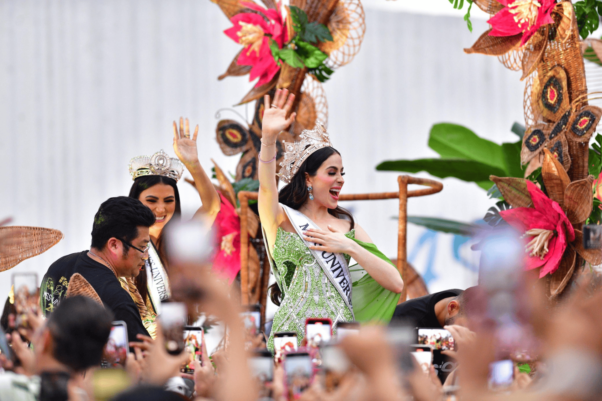 Bosch abordó su carro alegórico a las 17:51. Decorado con garzas de petate, mariposas de semillas y la leyenda “Miss Universe México 2025, Fátima Bosch”. Durante el trayecto saludó al público, lanzó dulces y posó para fotografías con las familias.