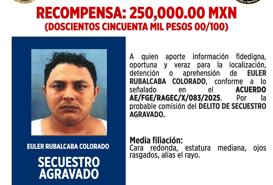 La fiscalía informó que otorgará la recompensa únicamente a quienes proporcionen “información fidedigna, oportuna y veraz”, conforme al acuerdo AE/FGE/RAGEC/X083/2025.
